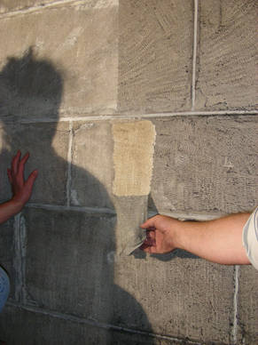Reinigungsproben im Steinbereich im Latexsprühverfahren