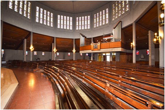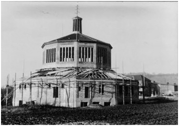 Alles andere als einfach war der Neubau, der am 1. Oktober 1950 begonnen wurde. Es war damals vorgesehen, nur den Kern, d. h. den Zentralbau der Kirche zu erstellen und einer späteren Zeit den völligen Ausbau nach den Plänen von Regierungsbaumeister Ing. Dr. Alfred Schmidt in Stuttgart zu überlassen. Der Kälteeinbruch um Weihnachten 1950 legte den Bau für längere Zeit still. Dazu kamen Bedenken vom Statistischen Landesbauamt. Auch glaubte die Firma, die den Bau übernommen hatte, zu ihren Angeboten nicht länger stehen zu können. Zu guter Letzt musste man sich für die Erstellung der Gesamtkirche entschließen. (Internet)