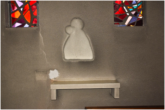 Reinigung der durch die Elektroheizung stark verschmutzten Decken- und Wandflächen. Die Kuppel trägt einen Schallschutzputz welcher nur bedingt mechanisch belastbar ist. Hier erfolgt die Reinigung im Akapad-Strahlverfahren.