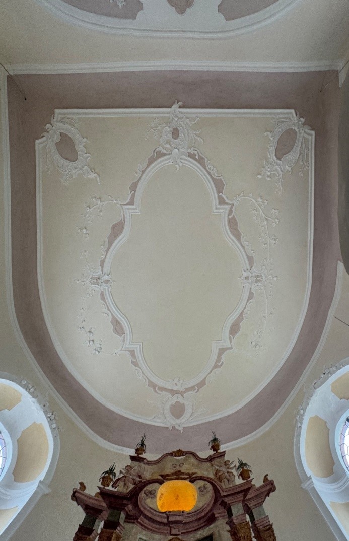 Die Chorbogenwand wurde mit der Barockisierung eingebaut.