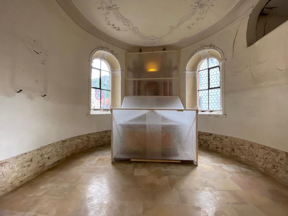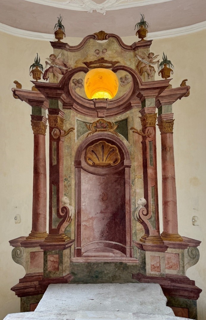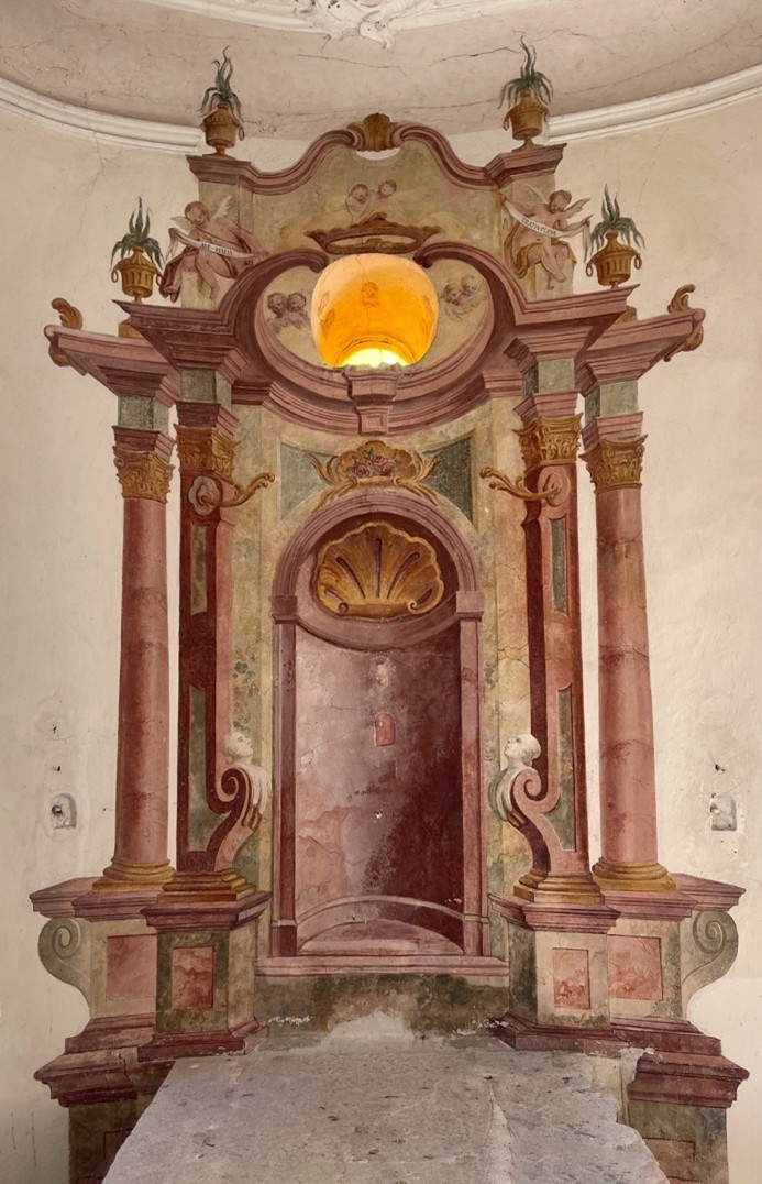Ferner fanden sich Hinweise auf frühere, seitliche Zugänge und Reste einer grauen Begleitstrichmalerei der Erbauungszeit.