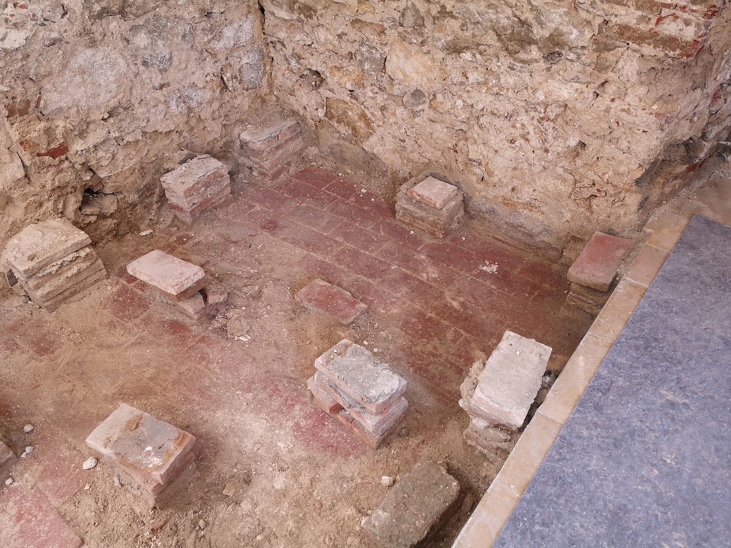 Südwestecke: Reste des früheren Bodenbelags (Bodenniveau tiefer als heute)